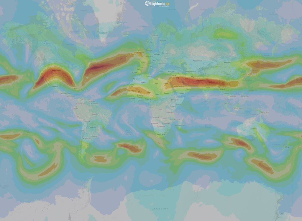 Now that we’ve got that out of the way, let’s get into what is happening and what it means for flights. Jet streams, illustrated on the Flightradar24 map by the color gradients, are stratospheric currents of air that swirl around the earth in the northern and southern hemisphere. Generally, there is a polar and subtropical jet stream in each hemisphere.