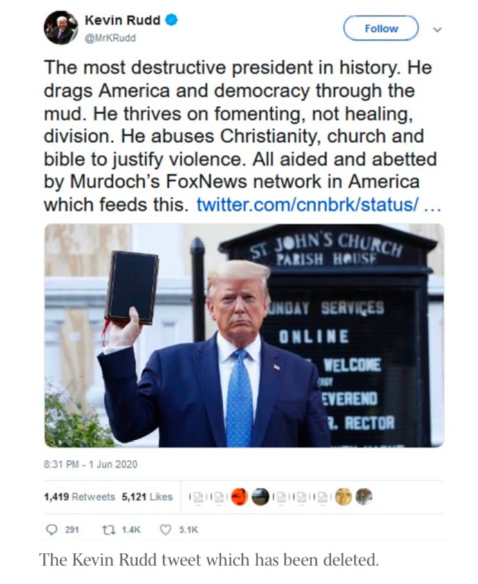 Did Kevin Rudd ever think this tweet below would see the light of day again and have such relevance as to question his position of Australian Ambassador to the United States of America?