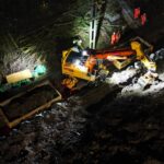 Engineers have worked around the clock to relieve the pressure on the land and protect the railway line, with more than 1,800 tonnes of earth removed so far using specialist road rail vehicles and excavators.
