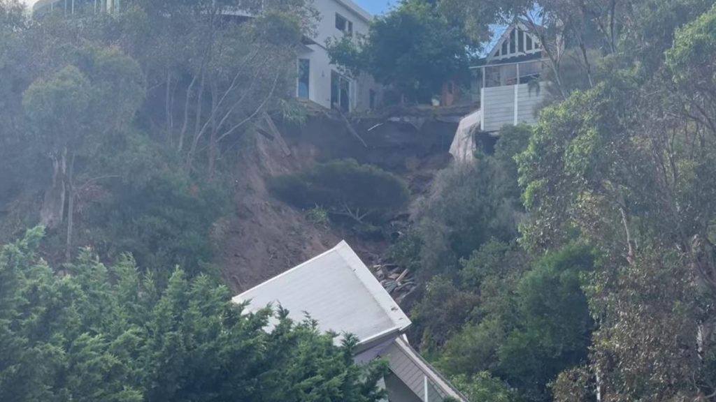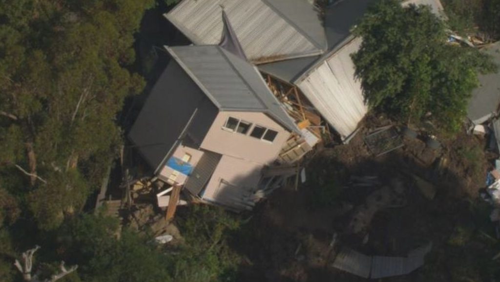 Emergency services were called to a property on View Point Rd in McCrae – about 59km south of Melbourne – about 8.45am on Tuesday after a landslide caused the building to crash down.
