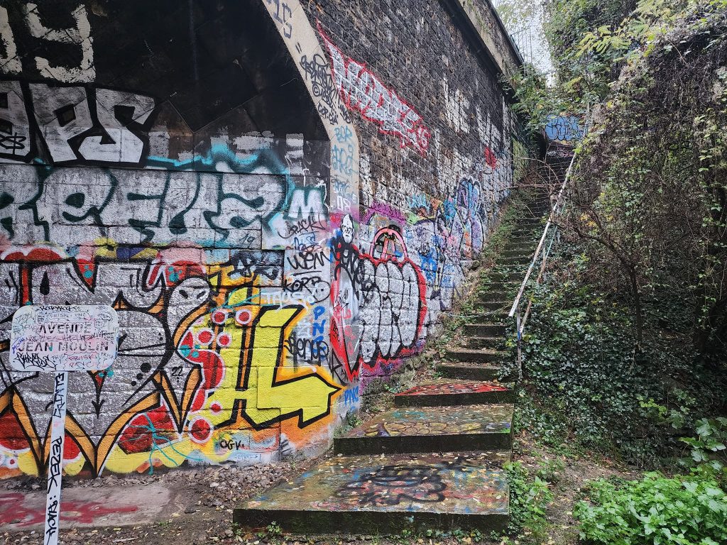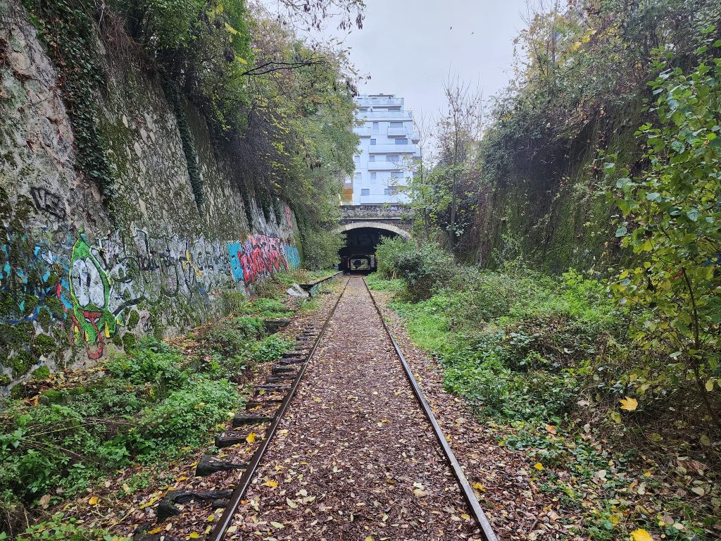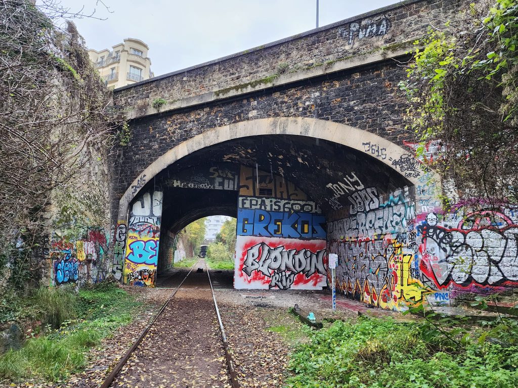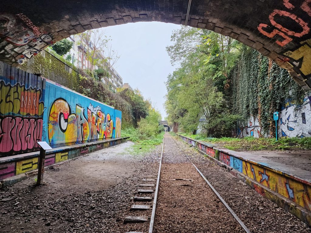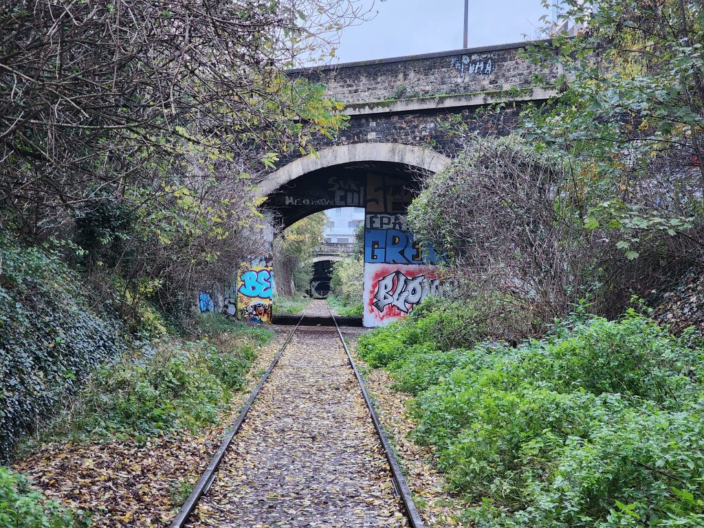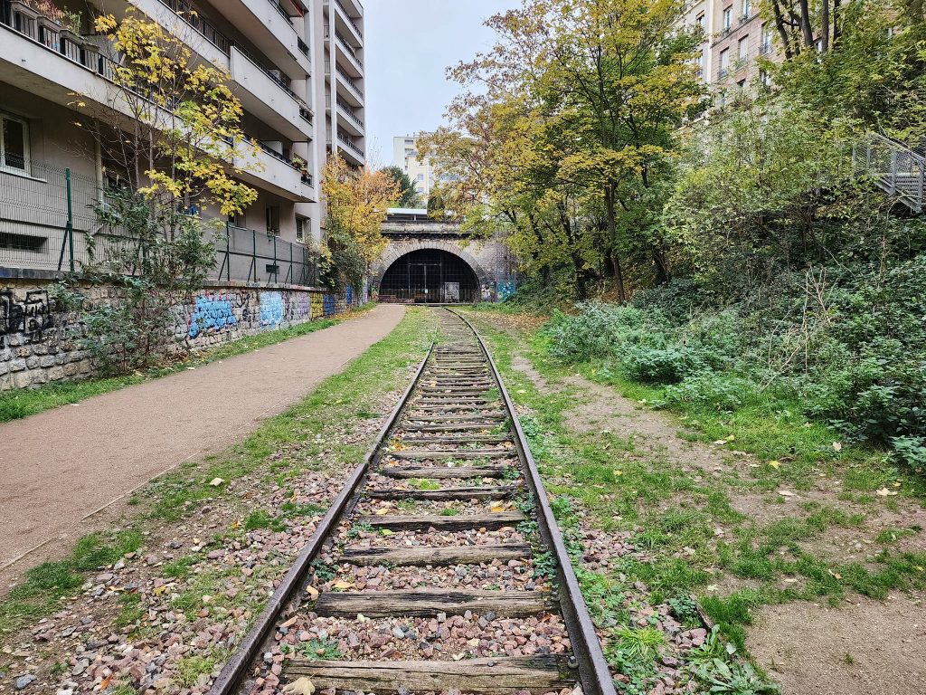 La Petite Ceinture is an abandoned train route in Paris. Portions of it are open to the public, portions of it are, as I understand it, used by the RER, and portions of it are just fenced off.