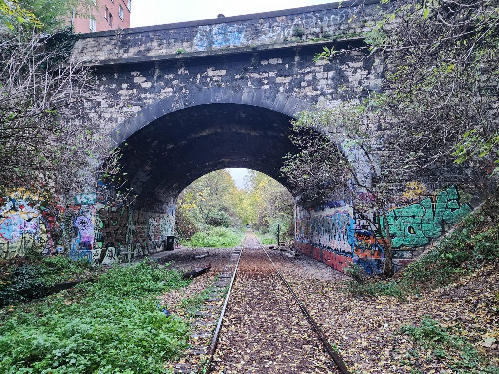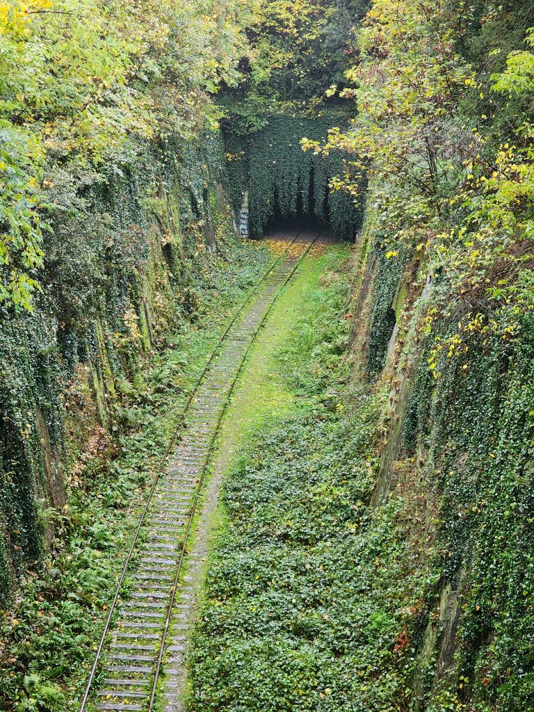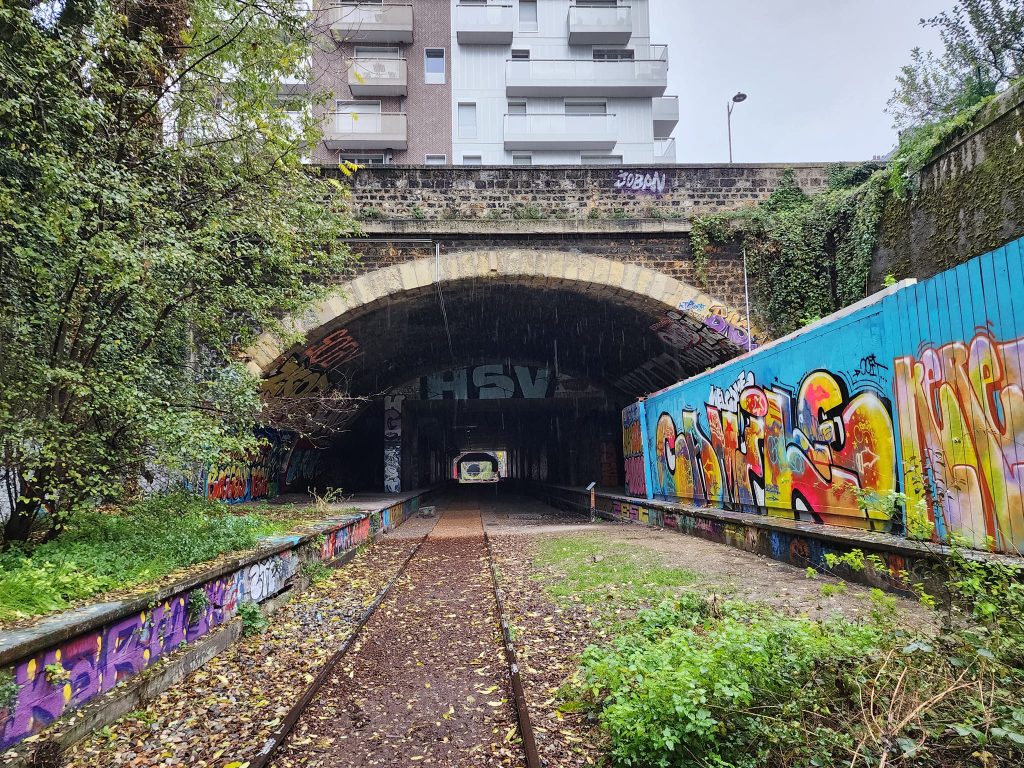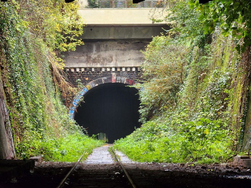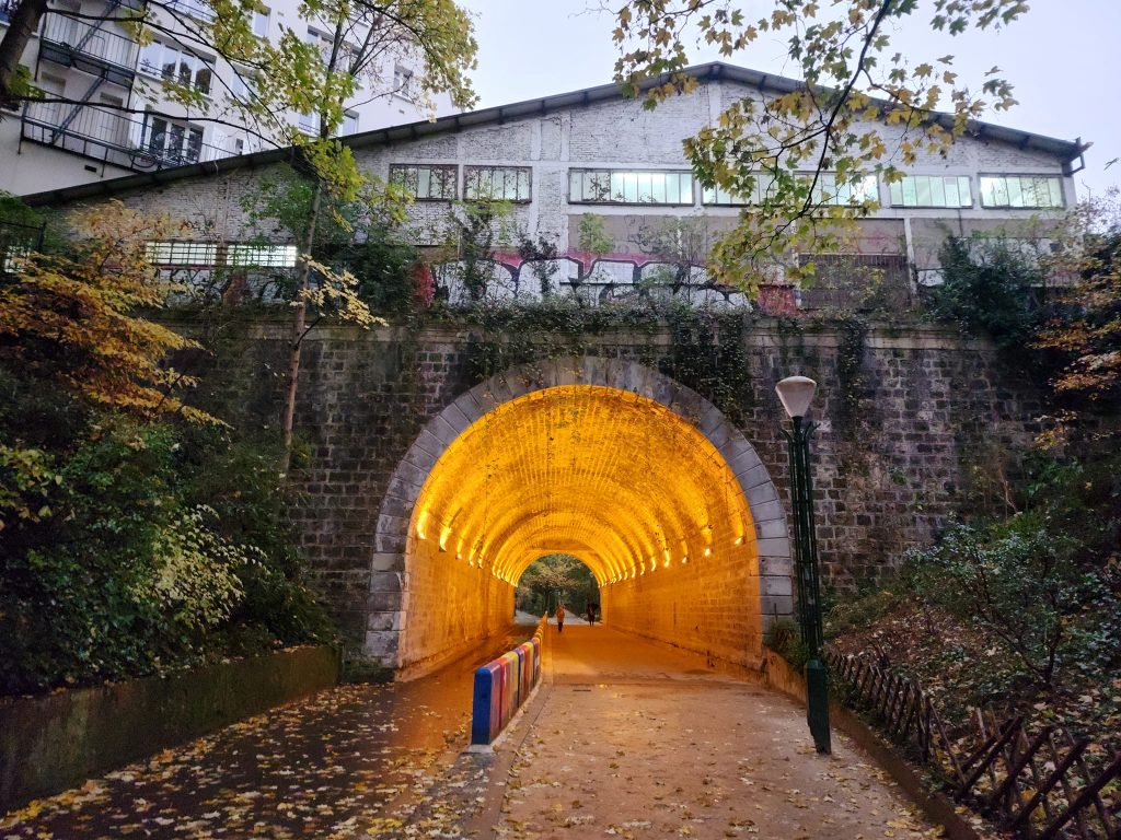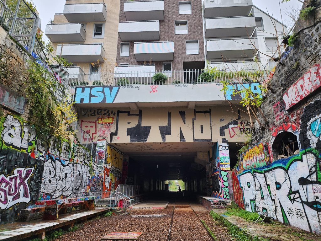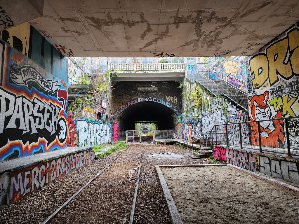 La Petite Ceinture is an abandoned train route in Paris. Portions of it are open to the public, portions of it are, as I understand it, used by the RER, and portions of it are just fenced off.