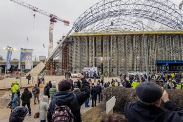 The Rooftop Ceremony is one of the oldest construction traditions in Latvia, though not the only one. In Latvian folklore, reaching the top of a building has historically been celebrated in various ways, symbolically embodying the strength of the building and the durability of the structures. By combining historical traditions with modern construction practices, the Riga Central Railway Hub’s Rooftop Ceremony was open to the wider public, providing an opportunity not only to observe the construction site but also to learn about the project through informational materials, visualisations, and photographs of the new station.