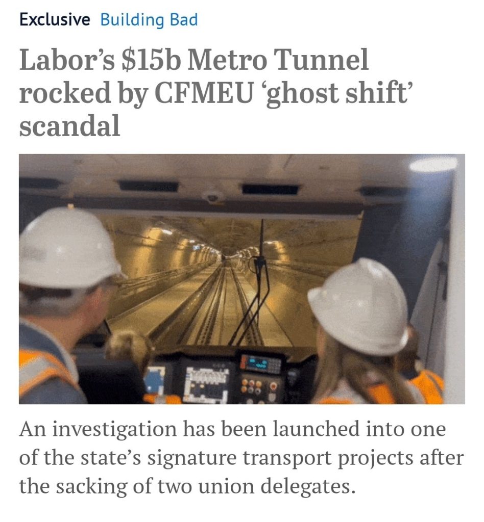A major investigation has been launched into allegations that Melbourne’s Metro Tunnel workers have been signing off on false timesheets for work not completed.