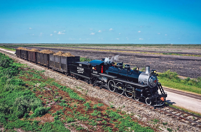 The oil-fired locomotive was built at Alco’s Richmond Works in April 1920 and worked in passenger service for Florida East Coast before being sold to U.S. Sugar in 1952. At U.S. Sugar, the locomotive moved sugar cane from the fields to a mill at Clewiston, Fla. After it was retired by US Sugar, 148 briefly returned to passenger service in the 1970s at New Jersey’s Black River & Western and Morristown & Erie. The locomotive saw a number of owners after that and spent time in Colorado, Michigan and Connecticut. In each instance, hopes to restore the locomotive to operation always faltered. In late 2016, U.S. Sugar repurchased the locomotive and brought it back to Clewiston for restoration. It returned to service in 2020. Since then it has operated with a modern U.S. Sugar logo on the tender.