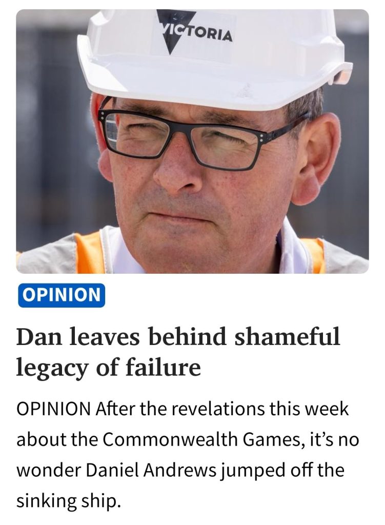 A reminder of Dictator Dan’s Melbourne – we can’t just ‘she’ll be right’ – on all this …. A politician where everything he worked on was a disaster for the state of Victoria.