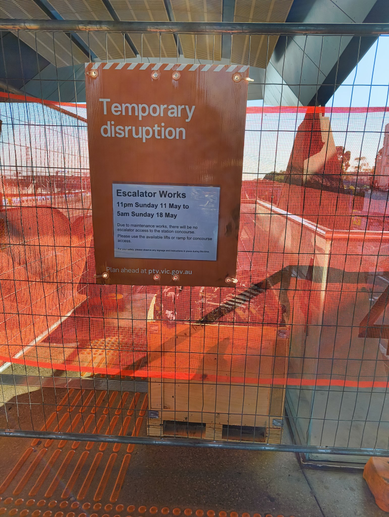 Absolutely intolerable state of affairs at North Melbourne with the only way out of the station from platforms 4 and 5 (the underspecced escalator) broken.