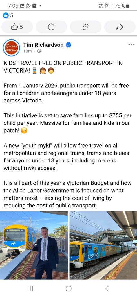 In a prelude to the 2025 budget papers being released this week, the premiere Jacinta Allan has announced children under the age of 18 years will have free access to public transport from the start of 2026.