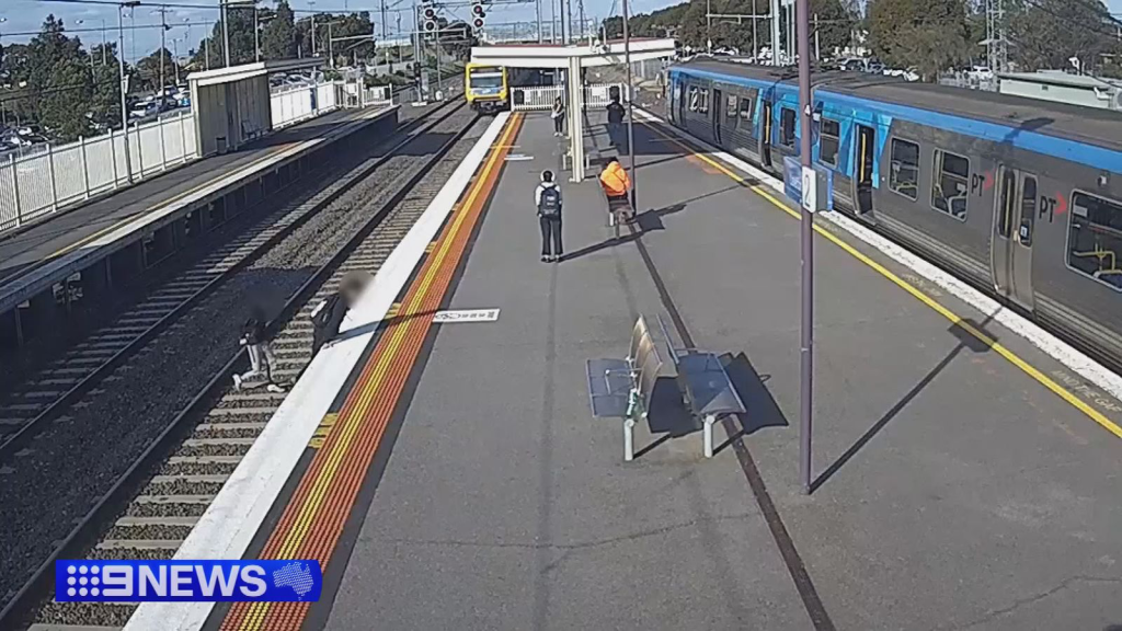 Footage released by Metro shows two boys jump onto the tracks in front of a train pulling into Laverton station in Melbourne’s west.