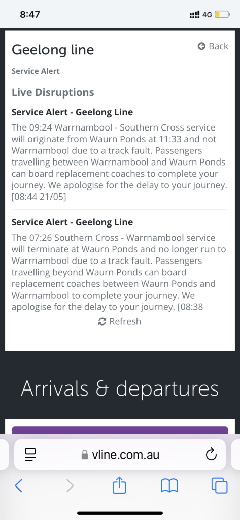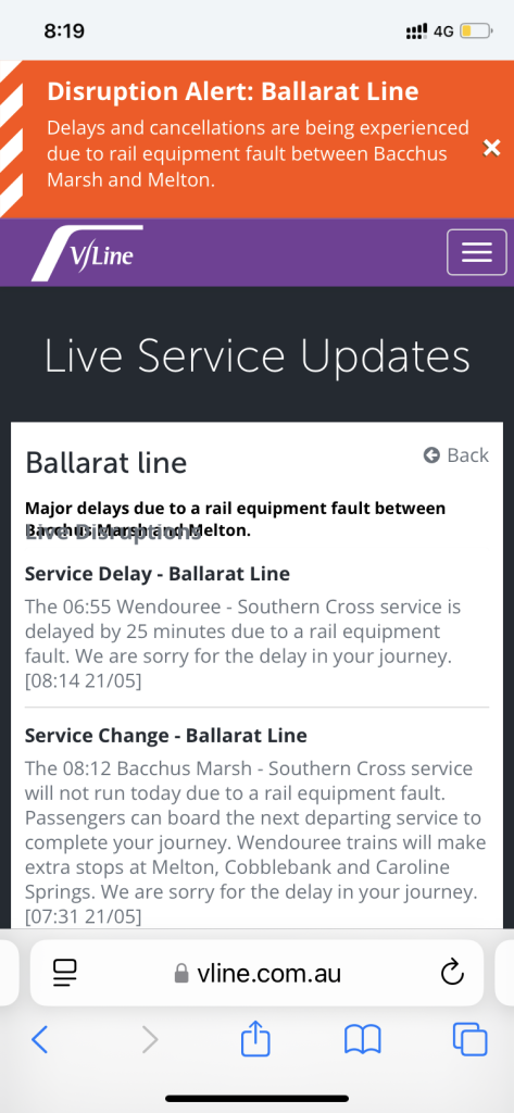 Rolling on from the outages and service issues on the Ballarat Line yesterday to which some have called a deliberate act of delaying people from regional centres access to the Emergency Tax protests in Melbourne, the Ballarat Line has collapsed again today with signalling failures and massive delays.