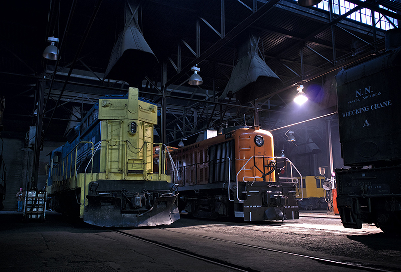 While NNRy is known for its fleet of steam locomotives, it also has a notable fleet of diesels as well, including three different Alco road switcher models and a Baldwin VO-1000. SD9 204 once worked for the SP and was later purchased by BHP Nevada Railroad, which operated the NNRy in the late 1990s during a brief freight revival on the copper-hauling short line. BHP rostered five SD9s, numbered 201 through 205, plus two 70-tonners and an RS-3. Locomotive 204, which was one of two painted into BHP Nevada’s blue and yellow scheme, later became part of the NNRy Museum collection.
