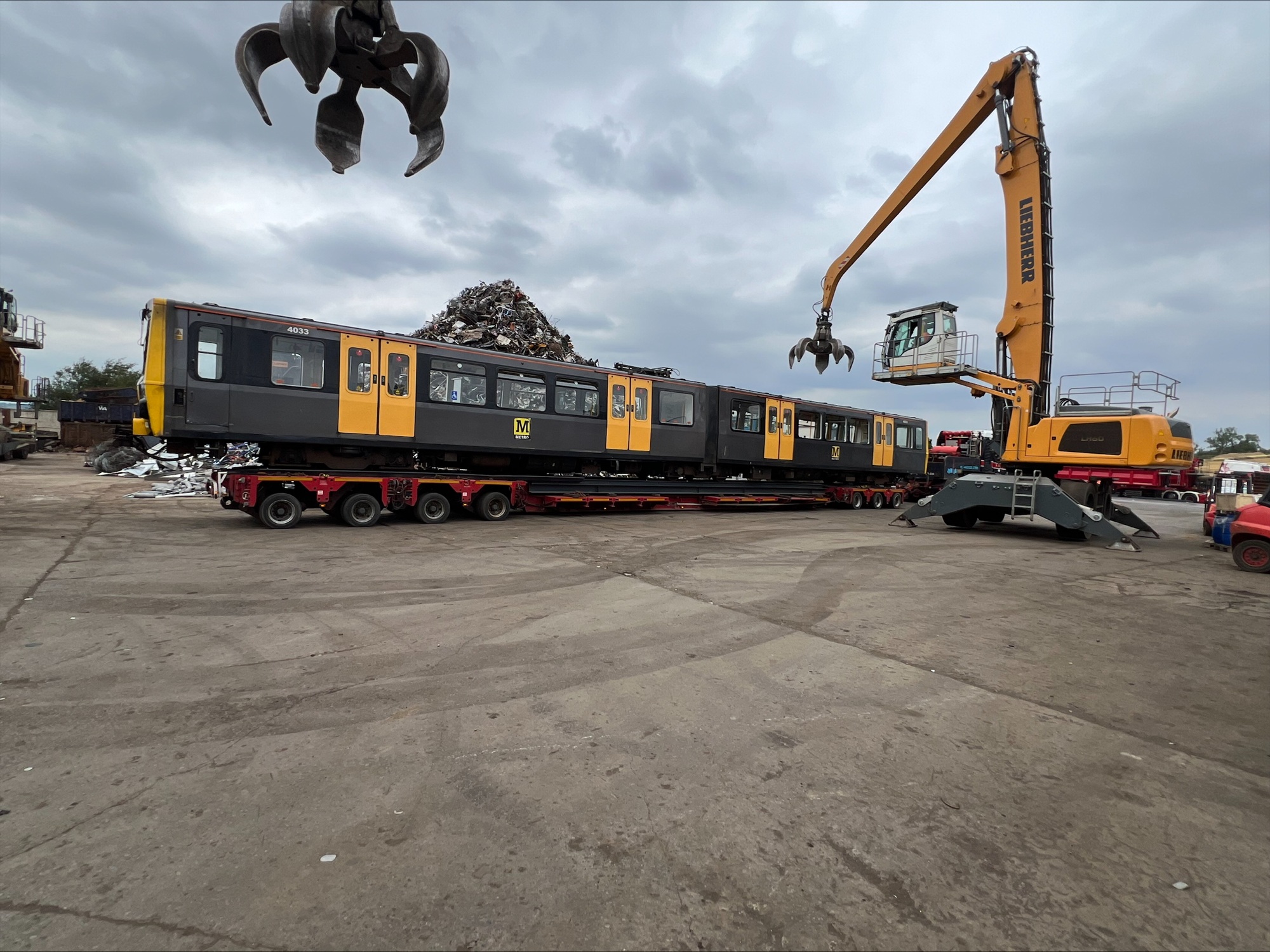 When it arrives at the scrap yard a giant hydraulic grabber lifts the train up – and so begins the breakage process.