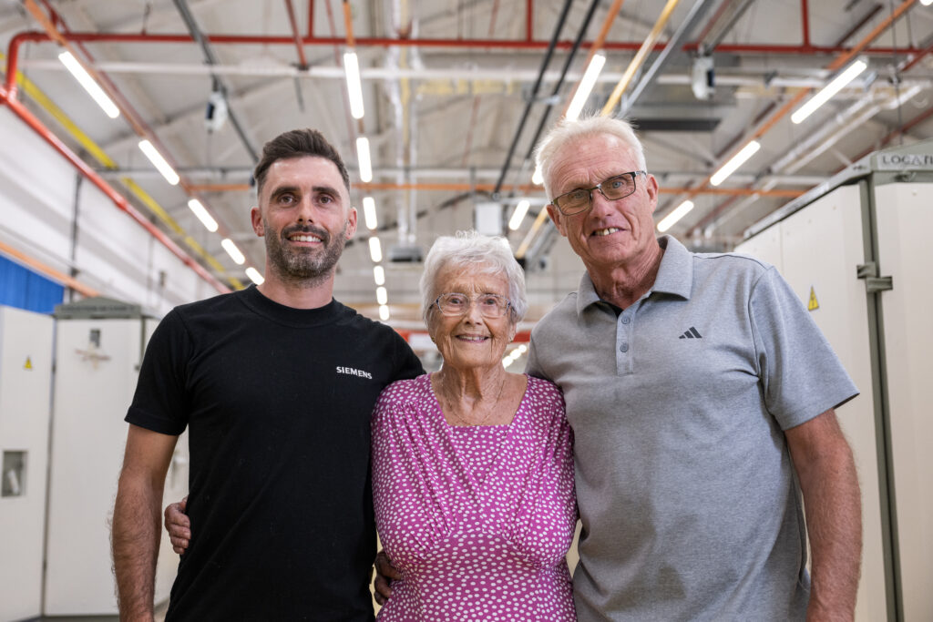 Siemens Mobility celebrated a remarkable family milestone as 91-year-old Miggie Orledge returned to its Chippenham facility for a special tour alongside her son, Kevin, a former employee and her grandson, Alex, a current team member. This visit reflects more than 125 years of manufacturing history and five generations of the Orledge family’s contributions to the site.