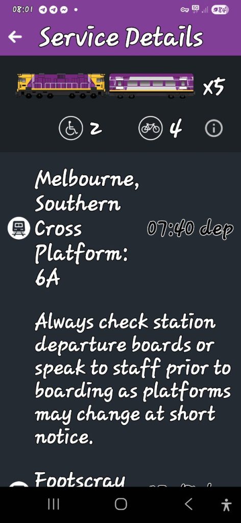 On 1635 it was pleasant and I was glad buffet service was active and the train went all the way back again to Southern Cross!