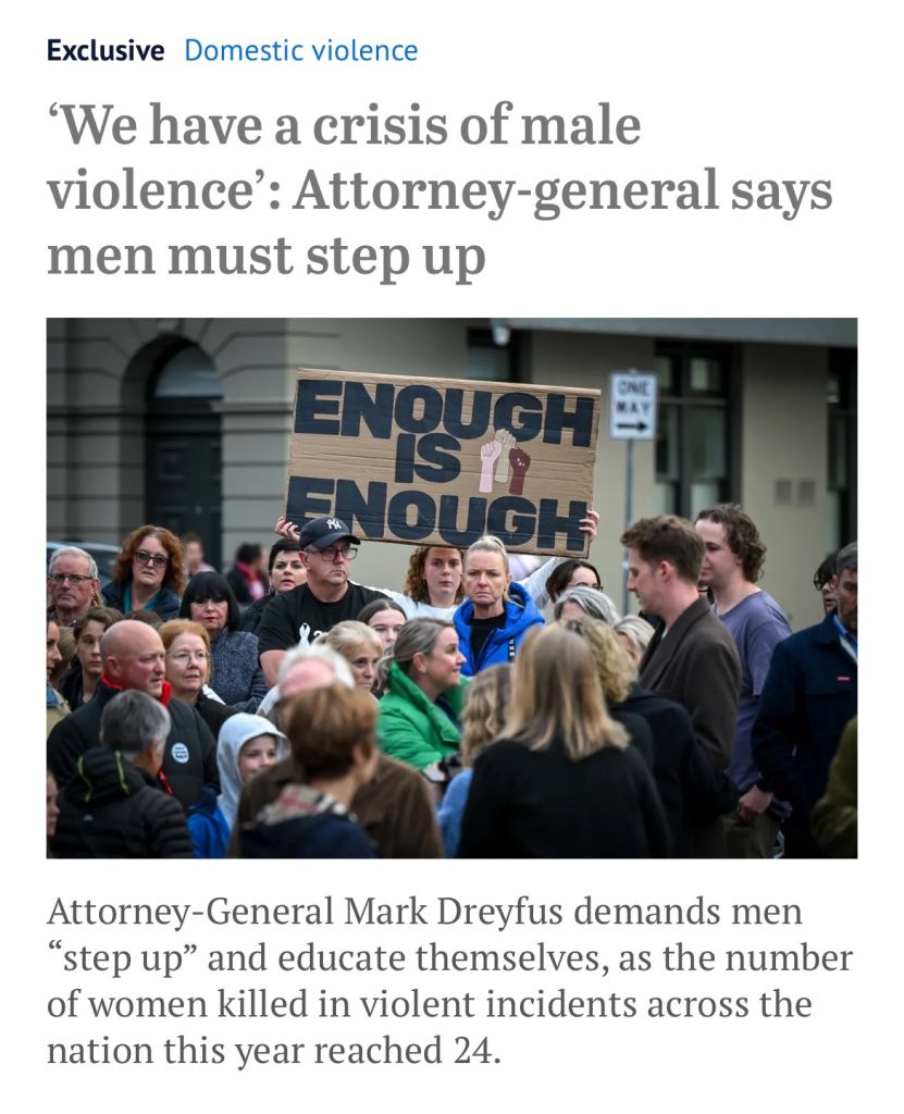 Every man we lose is someone’s Dad, child, brother or uncle Labor’s divisive grubby politics of pitting women against men is only inflaming things. It’s inappropriate for the Attorney General (and the PM) to say we have a crisis of male violence when we actually have a crisis in men’s mental health leading to death. This is bringing about great suffering to families Labor need to apologise to the men of Australia for saying they are violent.