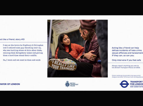 A new video campaign launches today at cinemas across London and on ITVX, encouraging people to be an active bystander and “act like a friend” to other passengers targeted by hate crime, sexual offences and harassment on London’s transport network, if they feel safe to do so. The video draws on three true stories of Londoners who have witnessed another passenger being targeted, and who have helped defuse the incident by engaging the targeted person in a conversation, as they would with a friend. Posters displayed on the TfL network from today also feature three other true bystander stories and the conversation starters that were used in these real incidents to show support to fellow passengers.