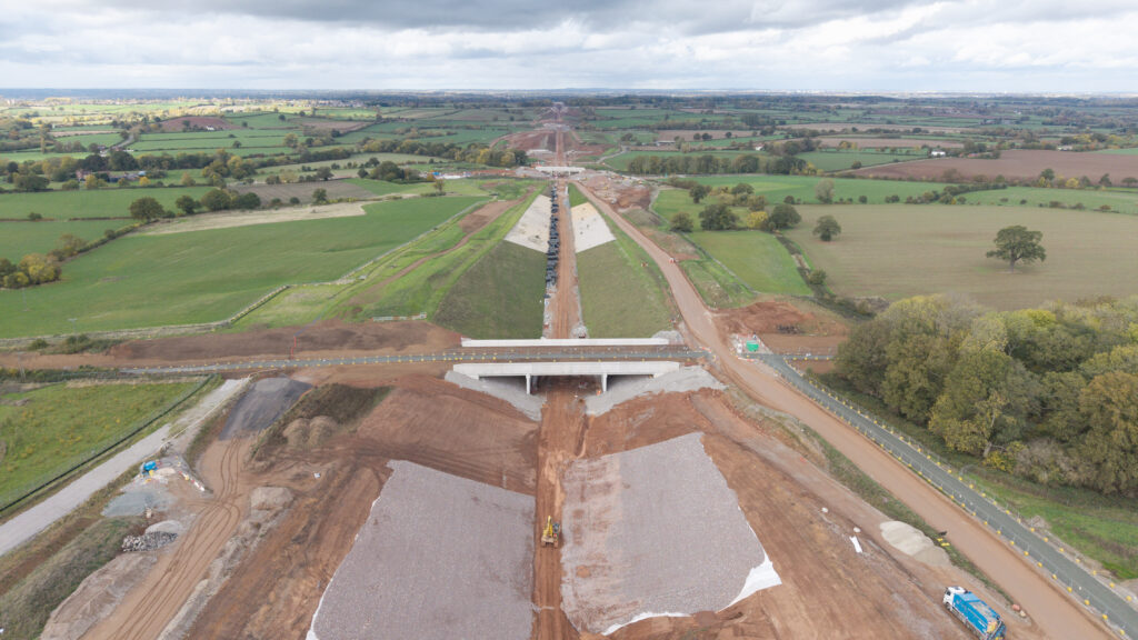Both bridges were delivered by Galldris, working on behalf of HS2’s main works contractor Balfour Beatty VINCI and are formed of precast beams sitting on concrete piers