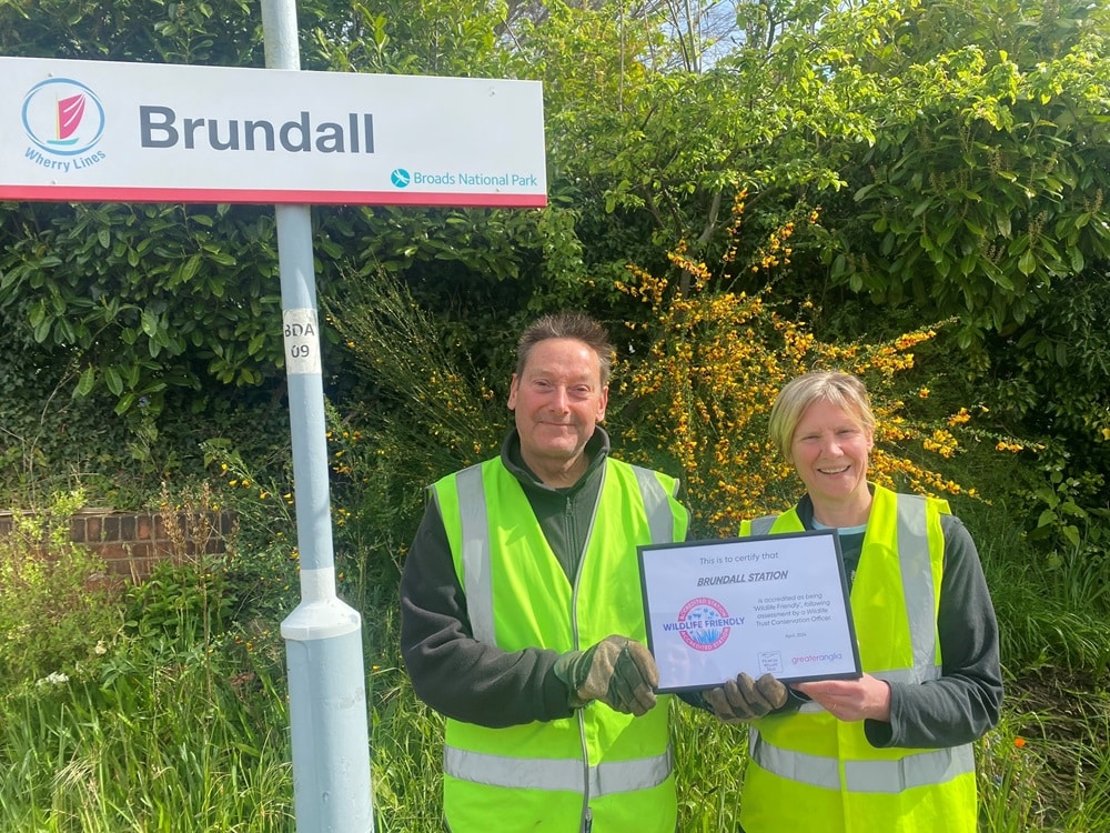 Brundall station adopters, Tom Adams and Tanya Ward, received the award following an assessment by a Norfolk Wildlife Trust Conservation Officer to determine how well the station supports local flora and fauna.