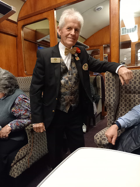 Beginning today with a photo from Saturday evening and the Fish and Chip train. One of our unsung heroes, Jeff has been in charge of these for the past 7 years. A lot of organising goes into them, everybody from our Admin staff to the stewards on the train. On the night it’s Jeff who checks everyone in and is in charge of the smooth running of the evening, which it certainly was. Well done Jeff! You look very dapper with that bow tie and waistcoat.