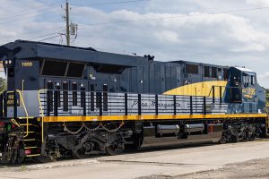 The design of the Pere Marquette heritage locomotive was meticulously crafted by employees at the CSX Waycross Locomotive Shop. According to CSX Carman Painter Eric Lee, “We had to measure each stripe precisely and position the words just right to ensure it captured the look of the original design. It took us about four days just to lay out the stripes before we could begin painting.”