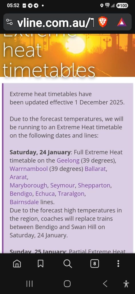 24/1/25- 07:39 VLocity Swan Hill service users due to full heat timetable halting the use of older classic fleet