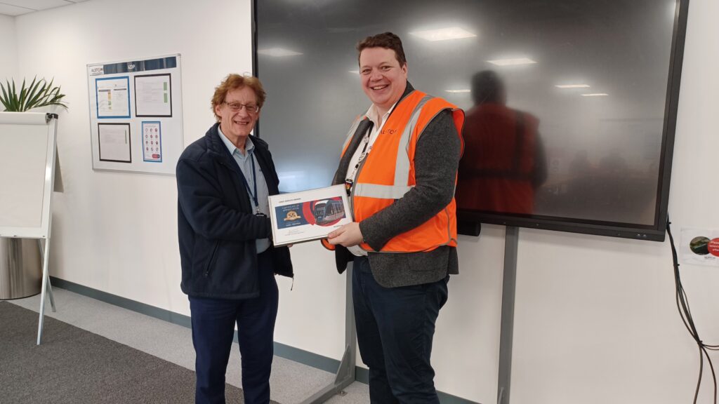 Marking their respective careers, Alex and Nigel were presented with their Long Service Awards by Rob Whyte, managing director UK and Ireland at Alstom during a lunch held in their honour at the company’s Derby Litchurch Lane Works. The facility is one of the world’s largest rolling stock factories, and the only UK factory that designs, engineers, builds and tests trains for domestic and export markets.