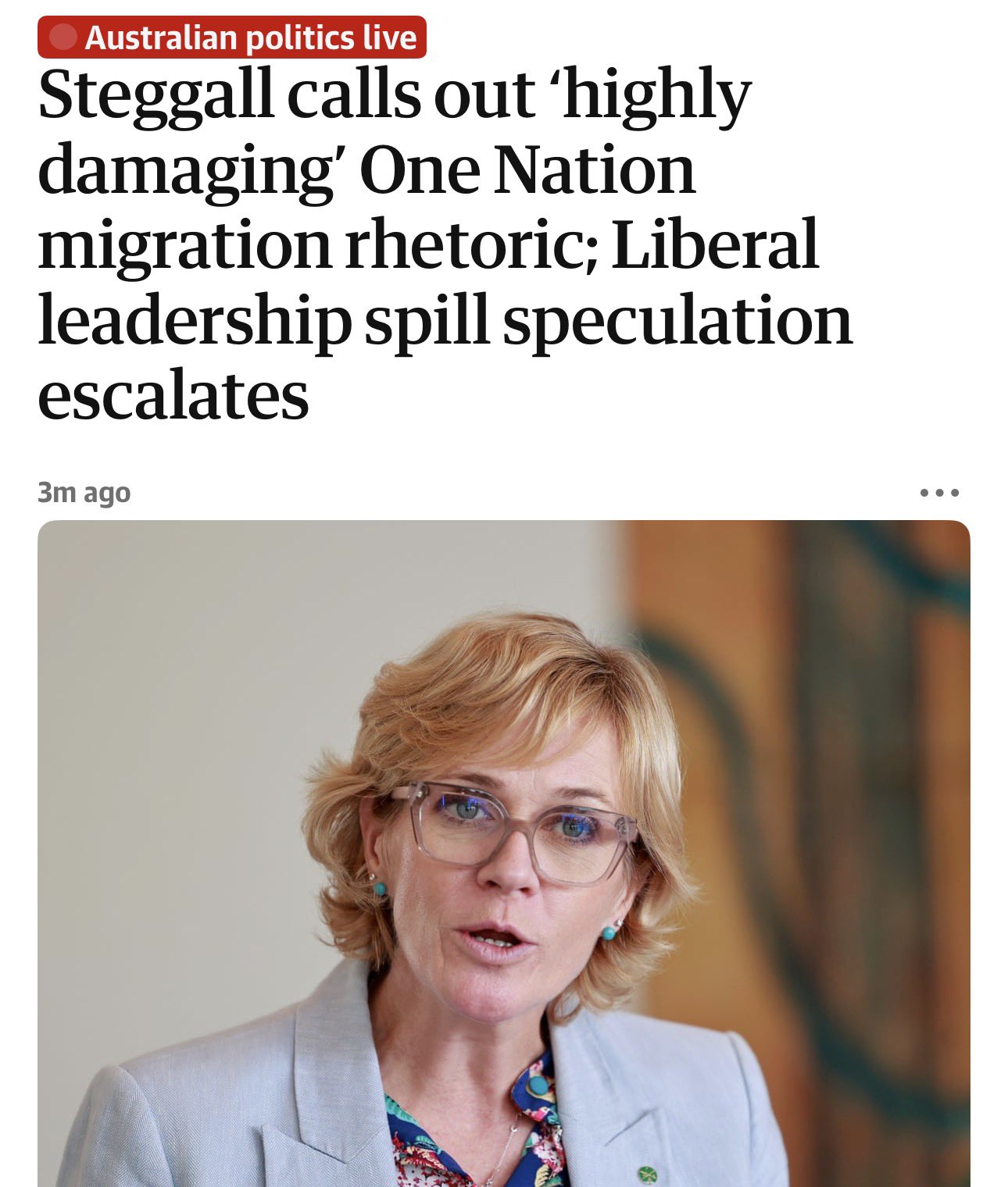 Steggall is a committed mass immigrationist. She understands neither the economic, nor the ecological costs. She’s moves in circles not impacted by this influx. She’s out of touch with public anger.