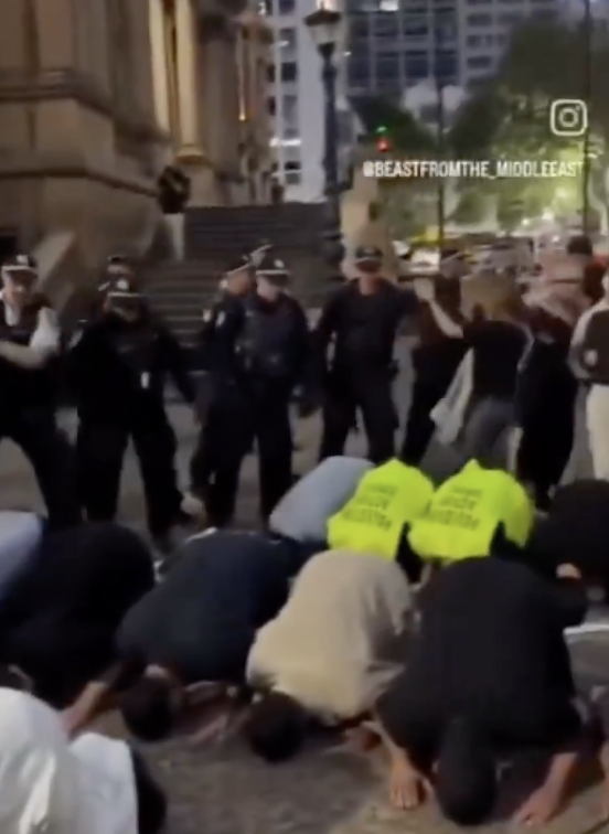 NSW Police issued move-on orders after speakers called for an unlawful march, leading to the forceful breakup of Sheikh Wesam Charkawi’s group praying Maghrib.