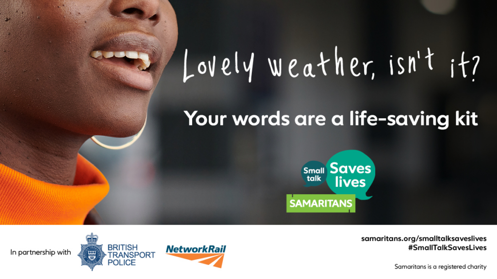 The Small Talk Saves Lives campaign, which Samaritans has run in partnership with Network Rail and British Transport Police since 2017, encourages the public to make some small talk with someone they think could be in distress, as your words could be a life-saving kit.