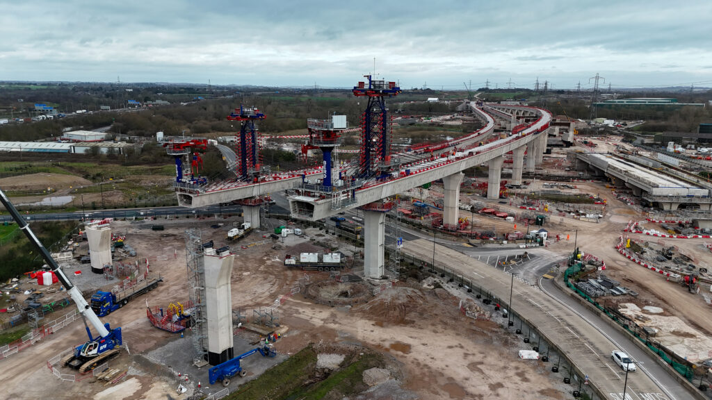 The Delta Junction is one of the most complicated parts of the HS2 project, carrying the high-speed line across a dense web of motorways, local roads, railways, rivers and floodplains. Two major groups of viaducts (at Coleshill and Water Orton/River Thame) are being built using pre-cast segments from Kingsbury.