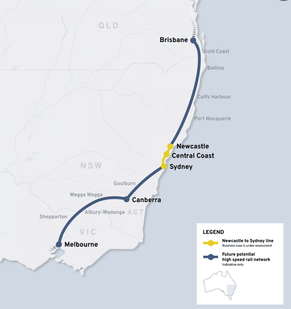 Australian governments have been investigating high-speed rail since the 1980s. A 2013 report on the potential for a network linking Australia’s east coast cities recommended the Newcastle to Sydney connection should be built after Sydney was linked to Canberra and Canberra to Melbourne.