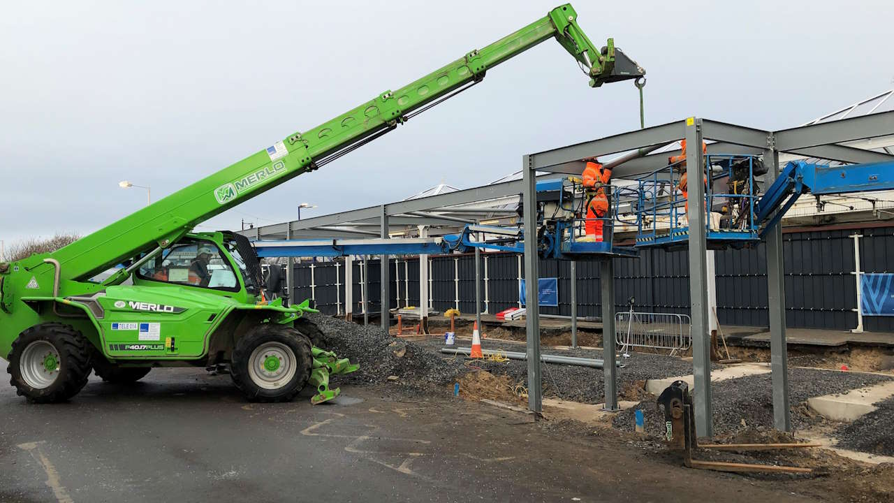 Major progress in rebuilding fire-damaged Scottish station building Posted on January 20, 2024 by A major step forward has taken place in rebuilding the fire-damaged building on Platform 1 at Troon station in South Ayrshire in Scotland