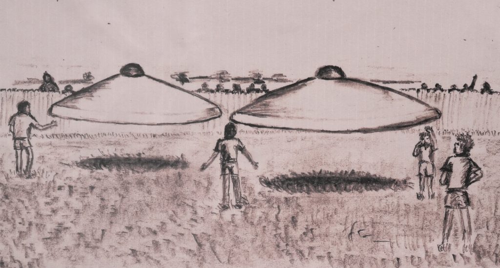 Then, she watched as the craft rose slowly into the air. “It turned on its side and it just went straight up into the air, so fast it was almost instantaneous.”