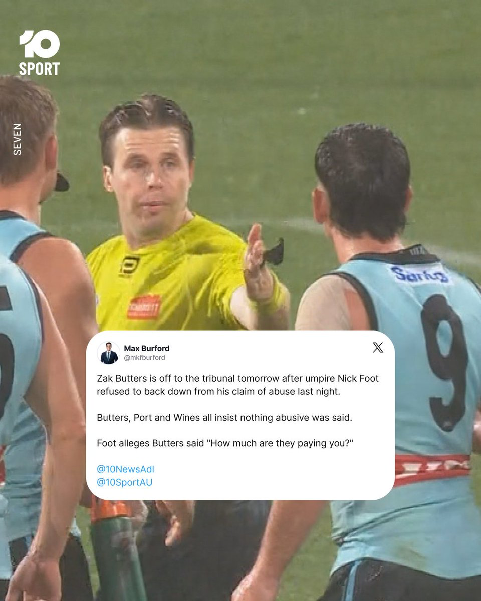 During Port Adelaide’s narrow Round 5 loss to St Kilda, Butters was hit with a 50-metre penalty for a high tackle, then allegedly told Foot, ‘How much are they paying you?’—questioning his integrity.