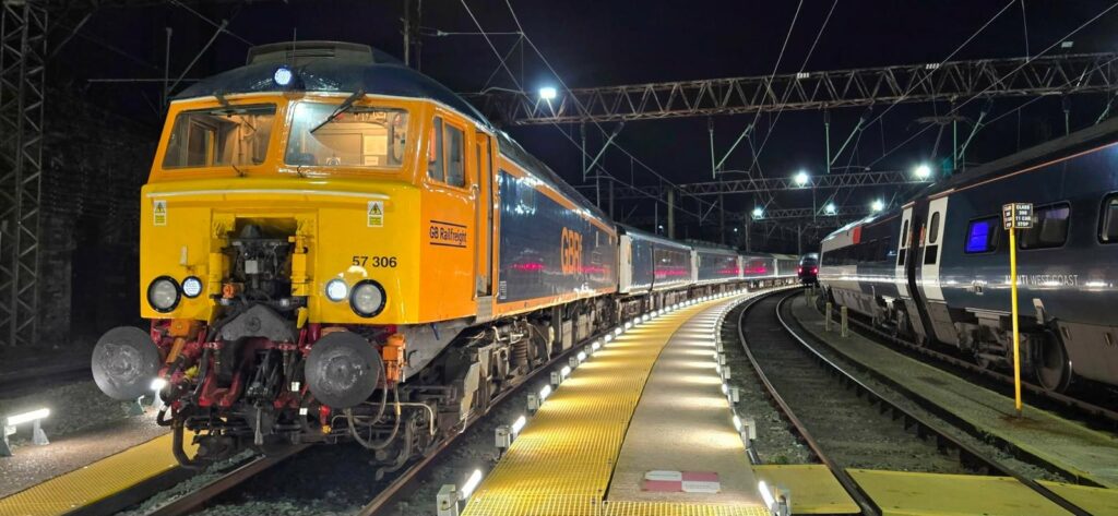 The railtour commenced at Edge Hill railway station – one of the oldest in the world – before being hauled by GB Railfreight (GBRf) locomotive No. 66701 to Liverpool Lime Street. No. 57306 then took over duties to Alstom’s Manchester Traincare Centre, while No. 66694 carried the train from Bescot Yard to Bletchley railway station. Around 300 passengers travelled on Alstom’s Depot Dash in Mark 3 carriages provided by Eastern Rail Services.