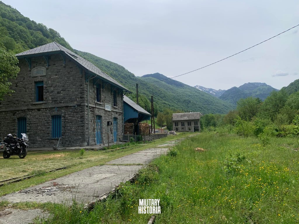 I wasn’t expecting to see this, but I had been following the disused line all the way. Some bridges removed, some bridges left. This was the line that connected France and Spain. After a rail disaster in 1970, this line was closed. This station and its hardware was left and it still remains.