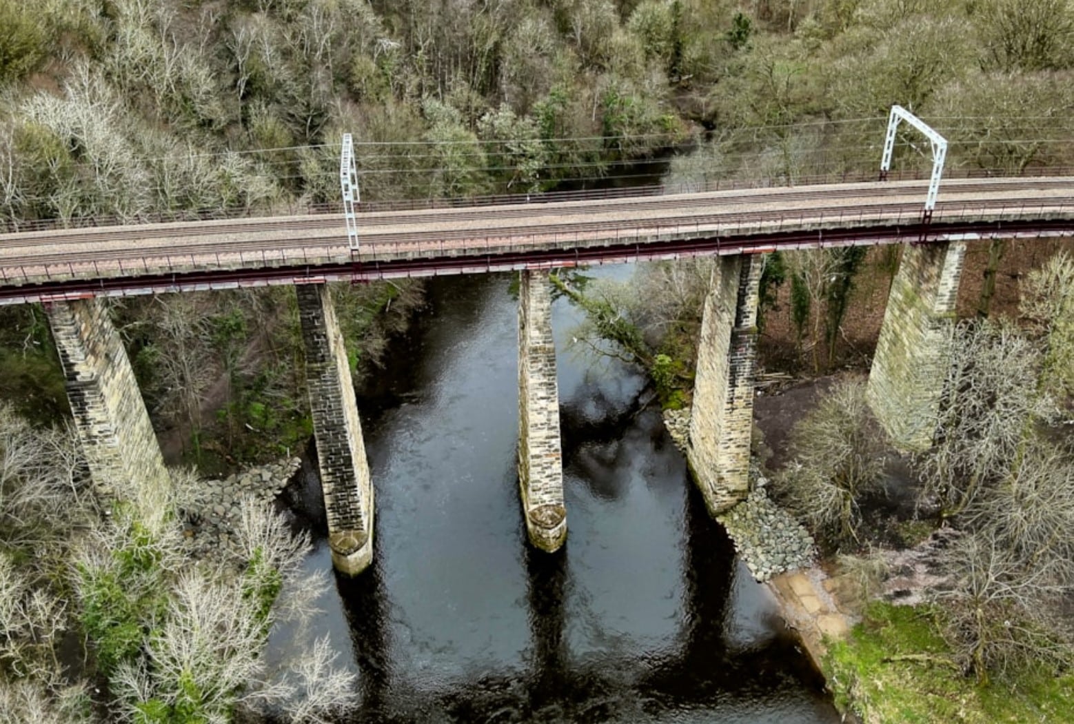 Nestled amidst ancient woodland, the 11-span viaduct serves as a crucial artery for passengers travelling between Glasgow and Motherwell by train.