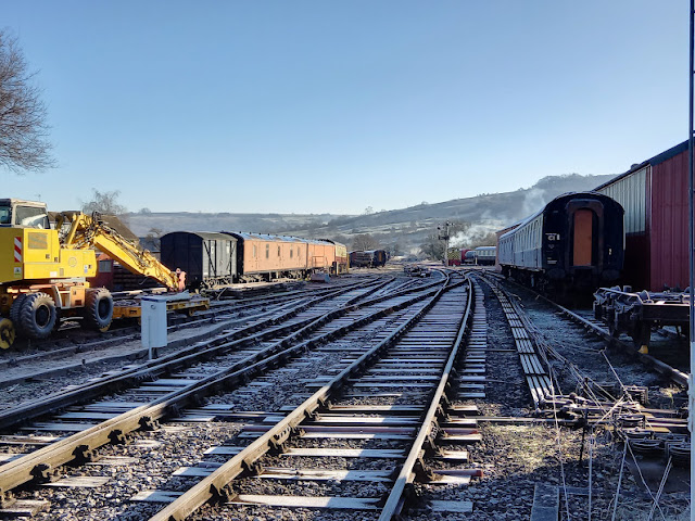 With a very hard frost and -7C (-8C in parts of Cheltenham), it wasn’t a day for hanging around. The clear day with the sunshine gradually warmed things up, and one or two from the Works even enjoyed their lunch sat on one of the station benches.