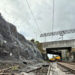 Engineers have installed specialist netting and over 160, 3m-long metal rock anchors on the site above the railway to reduce the potential of stones falling during freezing temperatures this winter.