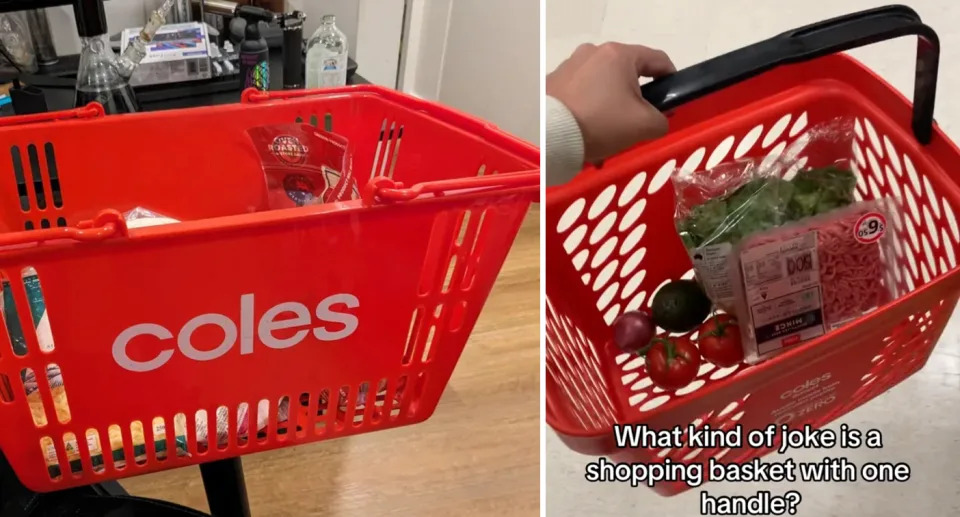 A basket’s worth of items can be pricey at the supermarket as the cost of living continues to bite, but many shoppers are raging well before they get to the checkout thanks to a new addition in stores. Coles and Woolworths introduced new similar environmentally-friendly baskets last year and a key feature in both is their single handle, with the previous ones being double-handled.