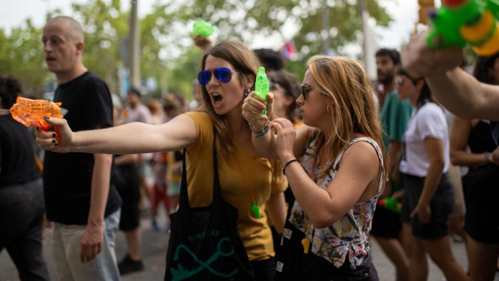 In the vision, visitors to the city can be seen packing their things and leaving as they are squirted with water pistols by a huge crowd that descended on the most popular tourist areas.