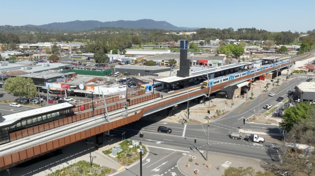 Lilydale Line trains have resumed running following a 6 week construction blitz to remove level crossings at Dublin Road, Ringwood East and Coolstore Road, Croydon. The new Ringwood East Station is also now open, with the new premium Croydon Station set to open to passengers later this month.